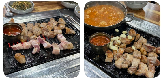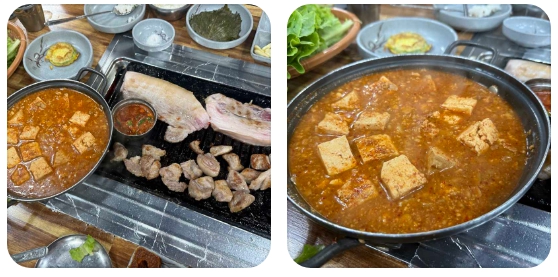 이곳을 방문하는 사람들이 고기만큼이나 손꼽아 기다리는 메뉴는 바로 청국장입니다. 일반적인 고깃집 찌개와는 궤를 달리하는 이곳의 청국장은 콩알이 하나하나 살아있을 정도로 구수한 풍미가 깊게 배어있습니다. 고기를 다 먹어갈 즈음 불판 위에 뚝배기를 올려 마지막까지 따뜻하게 즐기는 것이 이곳만의 단골 매뉴얼입니다. 청국장의 진한 국물은 가브리살과 하얀살의 기름진 맛을 깔끔하게 잡아주며 완벽한 미식의 마무리를 도와줍니다.